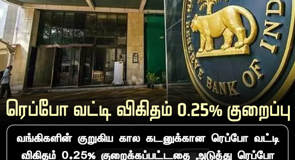 ரெப்போ வட்டி விகிதம் 0.25% குறைப்பு | Repo Rate Cut by 0.25%