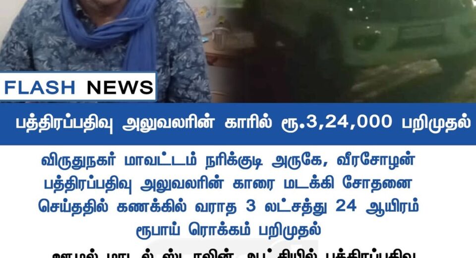 வீரசோழன் பத்திரியப்பதிவு அலுவலரின் காரில் பெரியளவு ரொக்கம் | Large cash recovered from Sub-Registrar’s vehicle