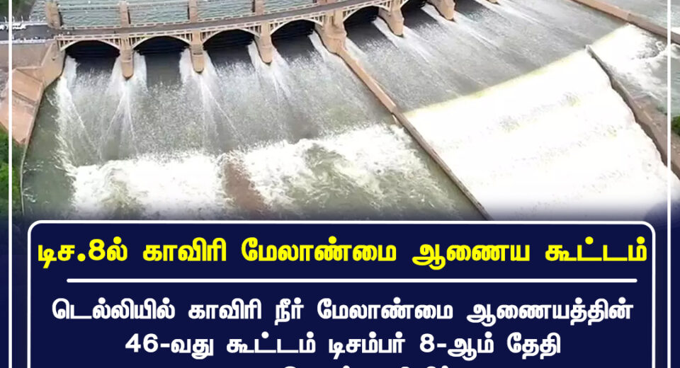 காவிரி மேலாண்மை ஆணையத்தின் 46வது கூட்டம் டிசம்பர் 8ல் நடைபெறும். | The 46th meeting of the Cauvery Management Authority will be held on December 8.
