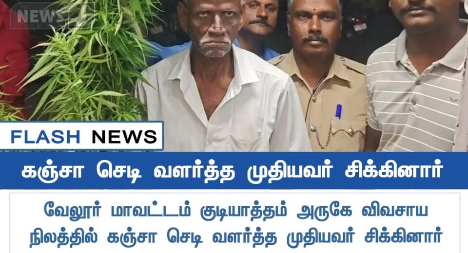 வெளூர் அருகே வீட்டில் கஞ்சா செடி வளர்த்த முதியவர் கைது. | Elderly man arrested in Vellore for cultivating ganja plants at home.