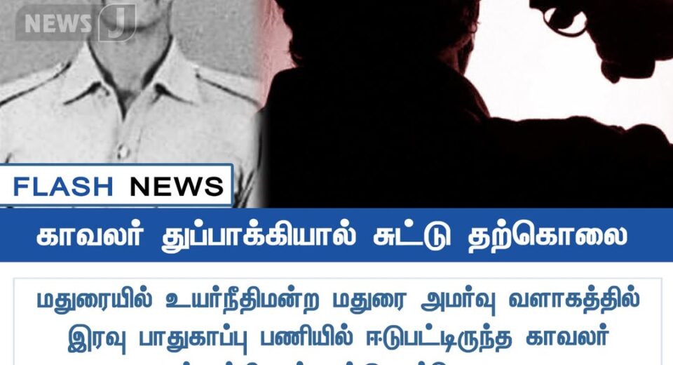 மதுரை அமர்வு வளாகத்தில் காவலர் துப்பாக்கியால் தற்கொலை. | Policeman dies by self-inflicted gunshot at Madurai court complex.
