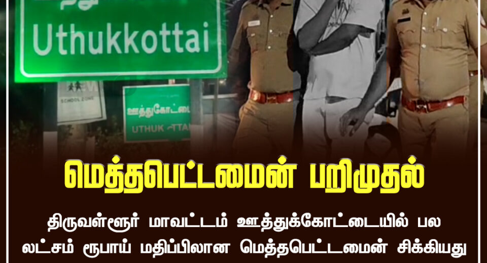 ஊத்துக்கோட்டையில் லட்சக்கணக்கில் மதிப்புள்ள மெத்தபெட்டமேன் பறிமுதல். | High-value methamphetamine seized in Uthukkottai.