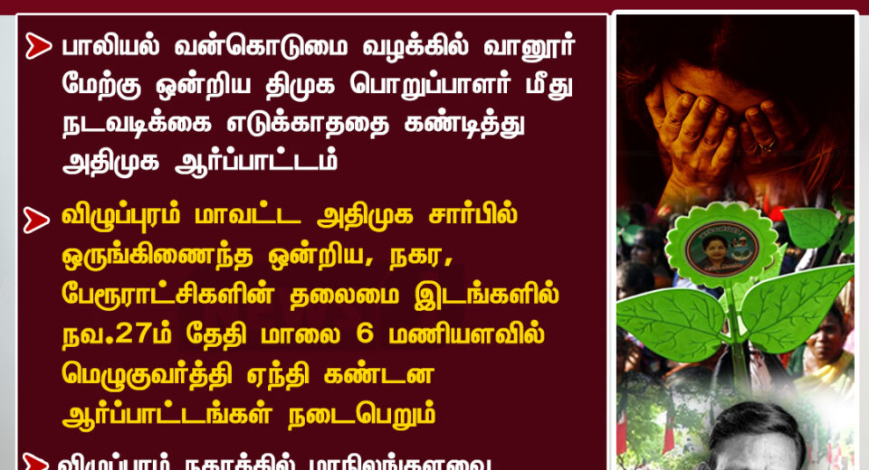 அதிமுக சார்பில் நவம்பர் 27-ஆம் தேதி கண்டன ஆர்ப்பாட்டம் | AIADMK to Hold Statewide Protest on Nov 27
