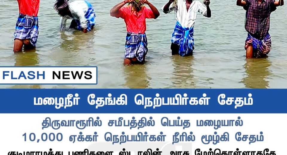 திருவாரூரில் தொடர்ந்து பெய்த மழையால் ஆயிரக்கணக்கான ஏக்கரில் நெற்பயிர் சேதம் | Heavy rains in Tiruvarur leave thousands of acres of paddy crops submerged