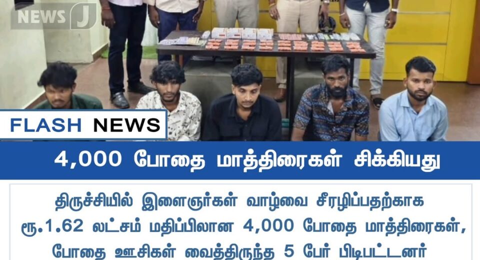 திருச்சியில் இனையம் வாயிலாக போதை மாத்திரைகள் விற்பனை – 5 பேர் கைது | Five arrested in Trichy for selling drug pills via online networks