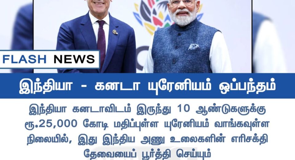 இந்தியா–கனடா இடையில் 10 ஆண்டுகள் ரூ.25,000 கோடி மதிப்புள்ள யூரேனியம் வாங்கும் புதிய ஒப்பந்தம் | New 10-year, ₹25,000-crore Uranium Supply Deal Between India and Canada