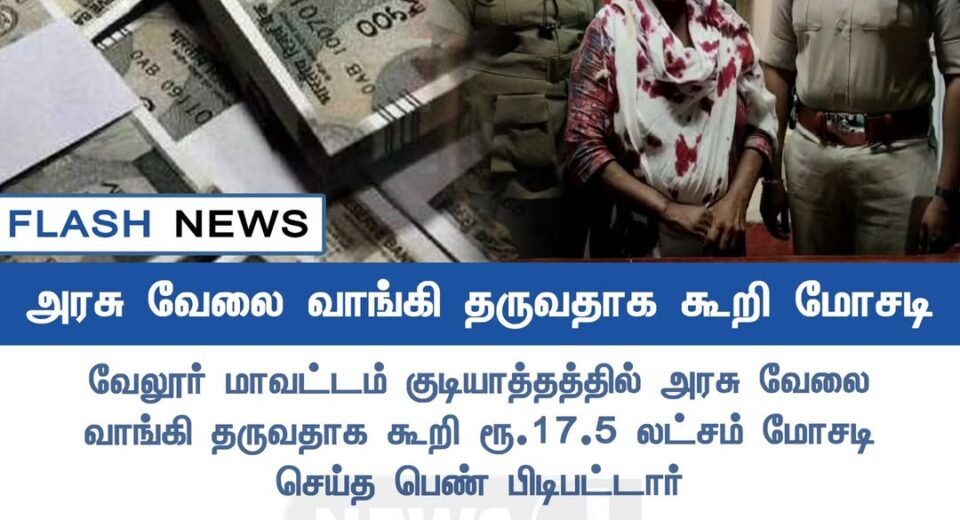 வேலூர் மாவட்டத்தில் அரசு வேலை வாங்கித் தருவதாக ரூ.17.5 லட்சம் மோசடி | Woman arrested for cheating ₹17.5 lakh promising govt job in Vellore