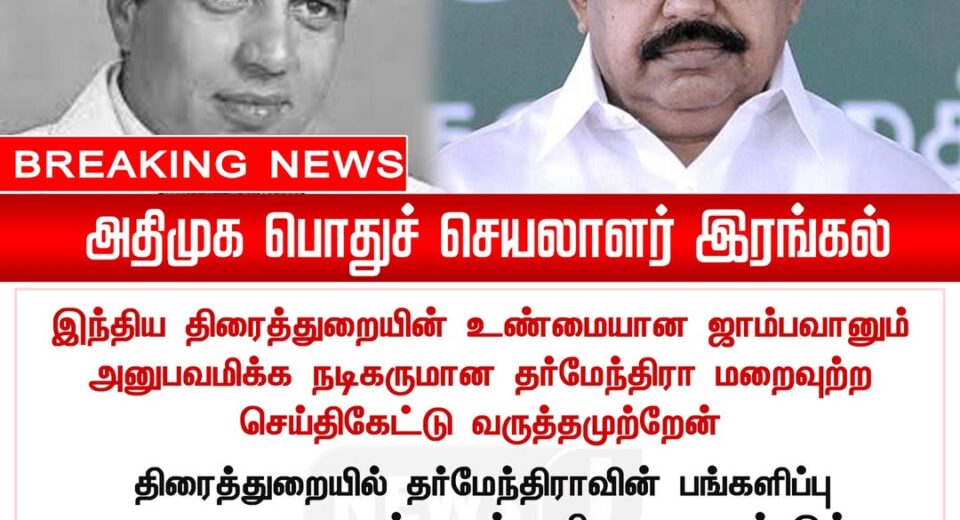 திரைப்பட நடிகர் தர்மேந்திராவின் மறைவு குறித்து அதிமுக பொதுச் செயலாளர் இரங்கல் | AIADMK leader expresses deep condolences on the demise of actor Dharmendra