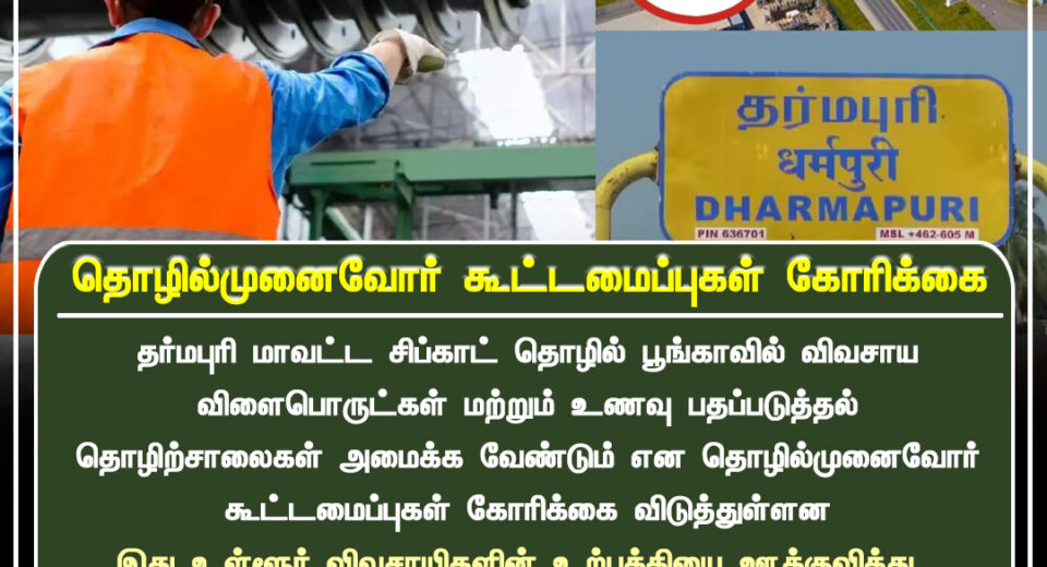 தர்மபுரி SIPCOT பகுதியில் தொழில் வளர்ச்சி, வேலைவாய்ப்பு விரிவு தேவை | Need for industrial growth & job expansion in Dharmapuri SIPCOT