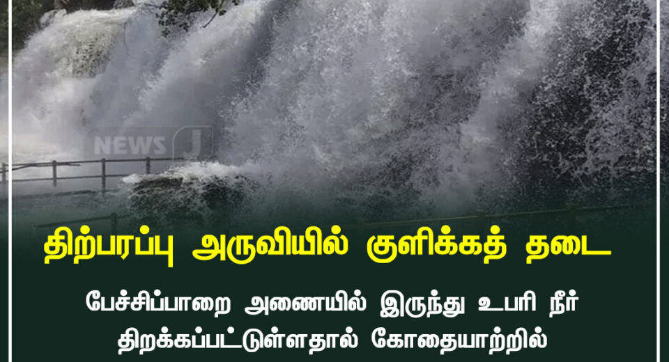 திர்பரப்பு அருவியில் நீர்மட்டம் அதிகரித்ததால் குளிக்க தடை | Bathing prohibited at Thirparappu due to high water flow