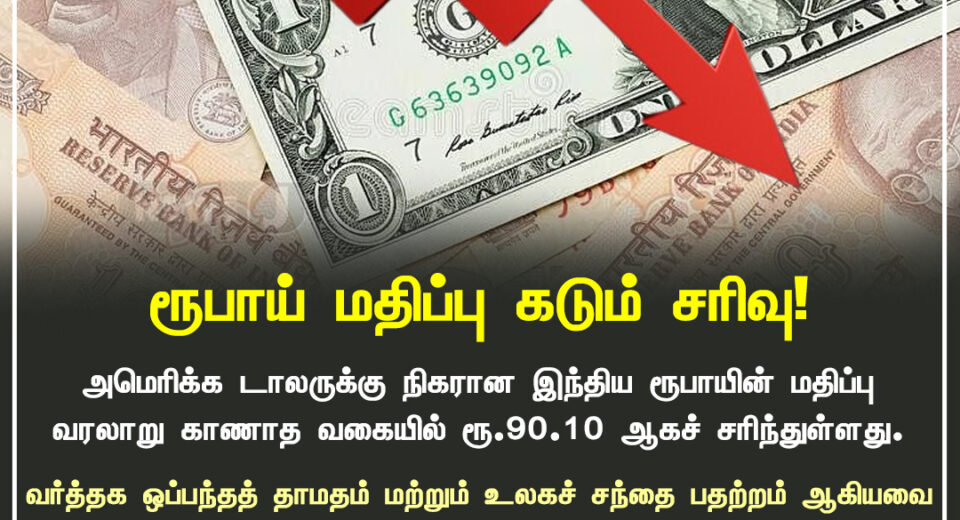 இந்தியா ரூபாய் அமெரிக்க டாலருக்கு எதிராக வரலாற்று சரிவை சந்தித்தது | Indian Rupee hits a historic low against US Dollar