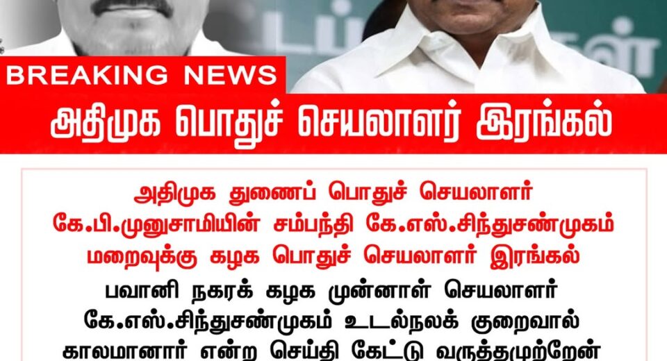 அதிமுக பொதுச் செயலாளர் கே.பி.முனுசாமியின் சமீபத்திய மறைவுக்கு இரங்கல் | Condolence expressed on the recent demise of KP Munusamy’s family member