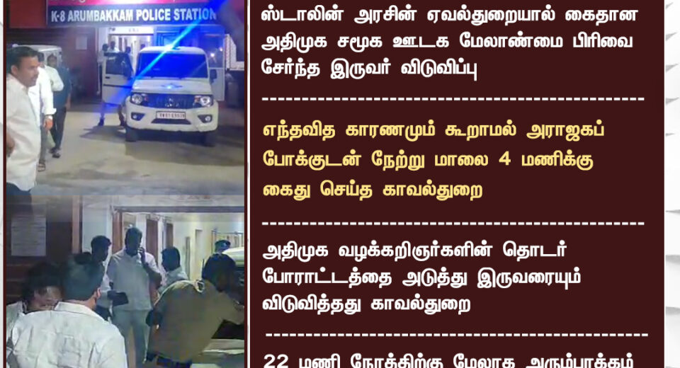 காவல்துறையால் கைது செய்யப்பட்ட ADMK சமூக ஊடக தொண்டரின் விவகாரம் பரபரப்பு | Arrest of AIADMK social-media supporter creates tension in Tamil Nadu