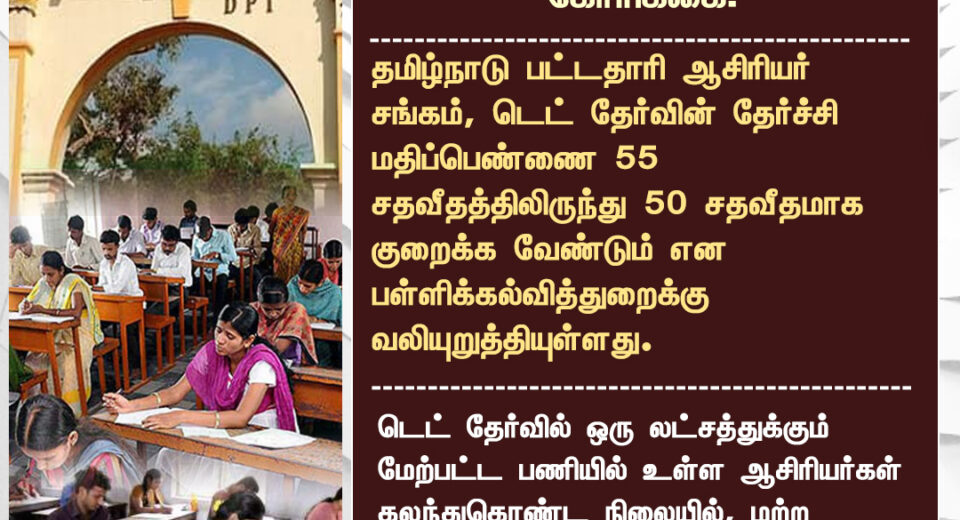 டெட் தேர்வில் தகுதி பெறும் மதிப்பெண் குறைப்பு கோரிக்கை – தமிழக ஆசிரியர் சங்கம் | Tamil Nadu Teachers Union Seeks Reduction in TET Cut-off