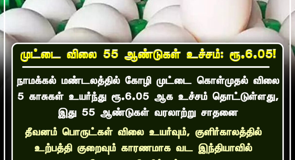 நாமக்கல் கோழி முட்டை விலை வரலாற்று சாதனை | Namakkal egg price reaches historic peak