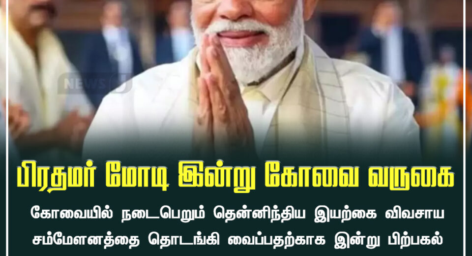 கோவையில் நடைபெறும் தென்னிந்திய இயற்கை விவசாய மாநாட்டில் பங்கேற்க பிரதமர் வருகை | PM attends South Indian Natural Farming Conference in Kovai today