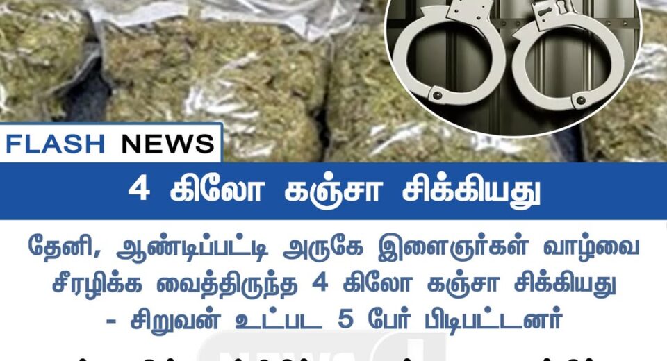 தேனி–ஆண்டிப்பட்டி அருகே 4 கிலோ கஞ்சா பறிமுதல் | Police seize 4 kg of ganja near Theni–Andipatti