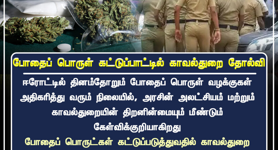 ஈரோட்டில் போதைப் பொருள் வழக்குகள் அதிகரித்ததால் போலீஸ் செயல்முறைக்கு எதிராக கேள்விகள் | Rising drug cases in Erode raise questions on police action