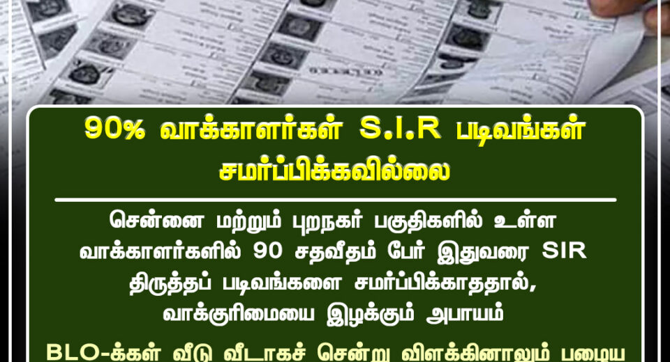 சென்னை மற்றும் புறநகர் பகுதிகளில் SIR படிவ சமர்ப்பிப்பு குறைவால் கவலை | Low SIR form submission rate raises concern in Chennai