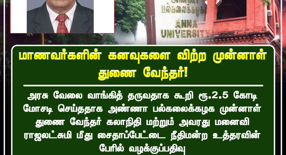 அரசு வேலை வாய்ப்பு மோசடி விவகாரம் சென்னை அனா பல்கலைக்கழகத்தைச் சுற்றி பரபரப்பு | Job scam involving fake government job promises creates tension around Chennai’s Anna University