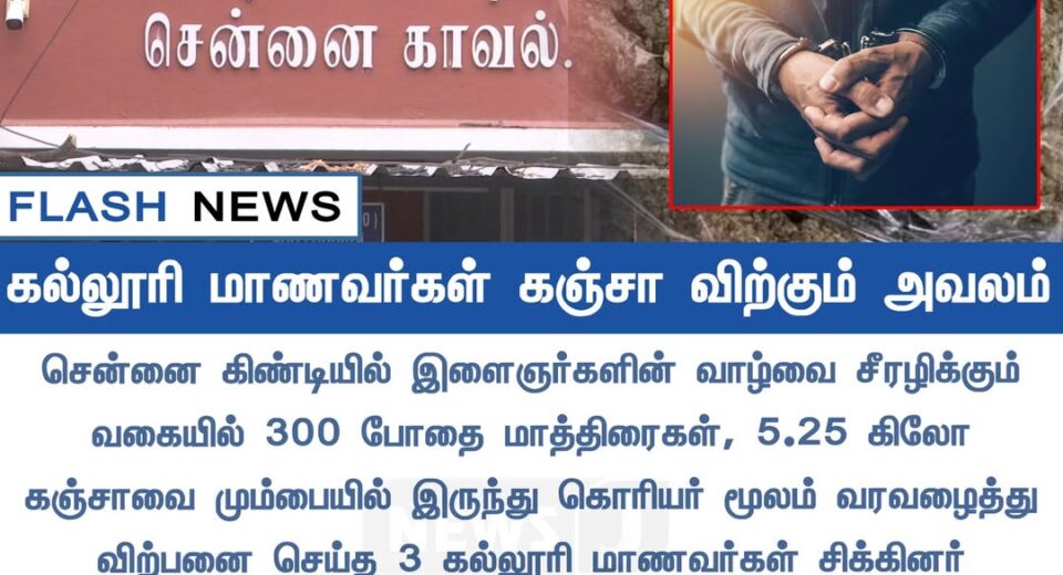 சென்னையில் கஞ்சா விற்பனைக்கு 3 மாணவர்கள் கைது | Three college students held in Chennai for supplying ganja