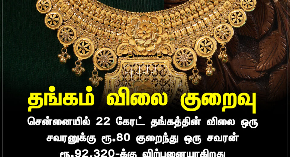 சென்னையில் 22 கேரட் தங்கத்தின் விலை இன்று குறைவு | 22-karat gold price sees a dip today in Chennai