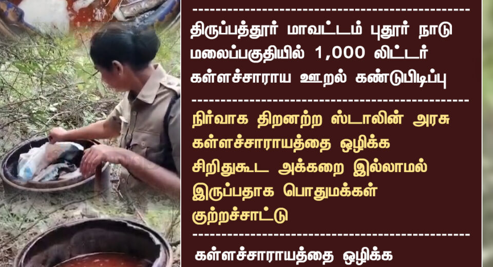 பூதார் மலைப்பகுதியில் 1,000 லிட்டர் கள்ளச்சாராயம் ضبط | 1,000 Litres of Illicit Liquor Seized in Hills