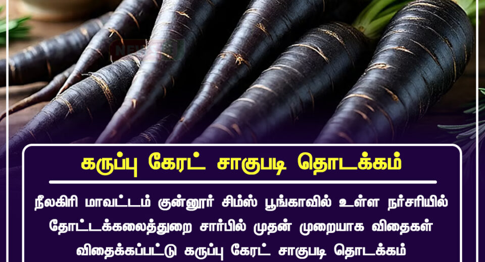 நீலகிரியில் முதன்முறையாக கருப்பு கேரட் சாகுபடி வணிகரீதியாக தொடங்கியது | Black Carrot Cultivation Launched Commercially in Nilgiris