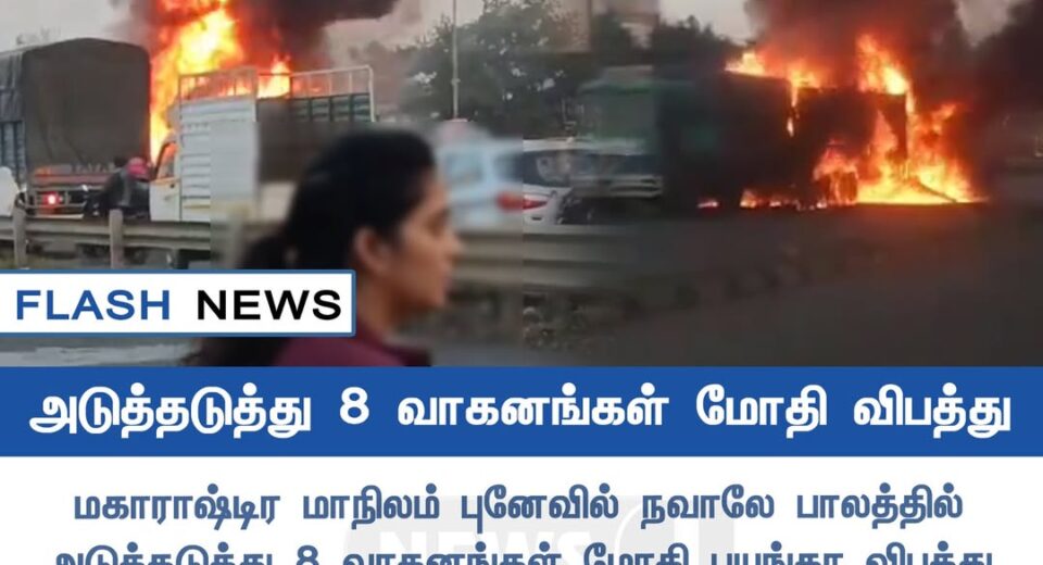 மகாராஷ்டிராவில் தொடர்ச்சியாக 8 வாகனங்கள் மோதி விபத்து நடந்தது | Eight vehicles collided in a major accident in Maharashtra பூனே அருகே நவாலே பாலத்தில் ஏற்பட்ட இந்த பேரவிபத்தில் பல வாகனங்கள் ஒன்றின் மீது ஒன்று மோதி தீப்பற்றியதால் பரபரப்பு நிலவியது. 7 பேர் சம்பவ இடத்திலேயே உயிரிழந்ததாகவும், 20-க்கும் மேற்பட்டோர் பலத்த காயங்களுடன் மருத்துவமனையில் அனுமதிக்கப்பட்டுள்ளதாக தகவல்கள் தெரிவிக்கின்றன. விபத்து நேரத்தில் பாலத்தை கடந்து சென்ற வாகன ஓட்டிகள், கனமூட்டப்பட்ட சரக்கு […]
