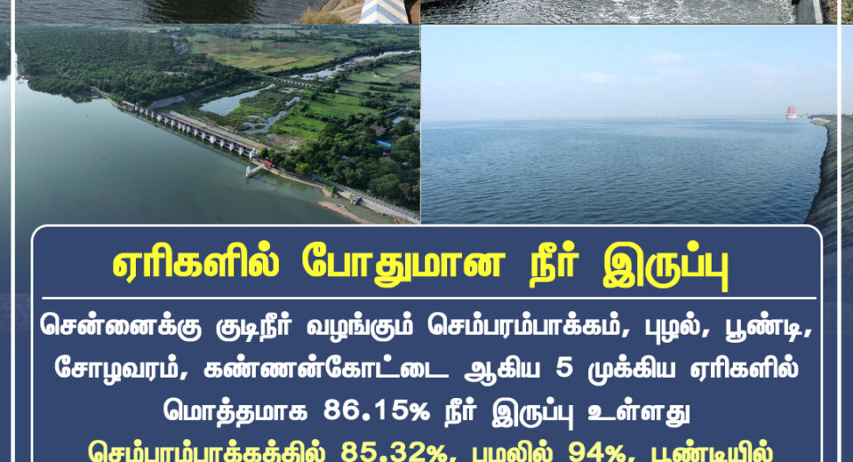 சென்னைக்கு குடிநீர் வழங்கும் முக்கிய ஏரிகளில் நீர் இருப்பு உயர்வு | Chennai’s Key Water Reservoirs Show Healthy Storage Levels
