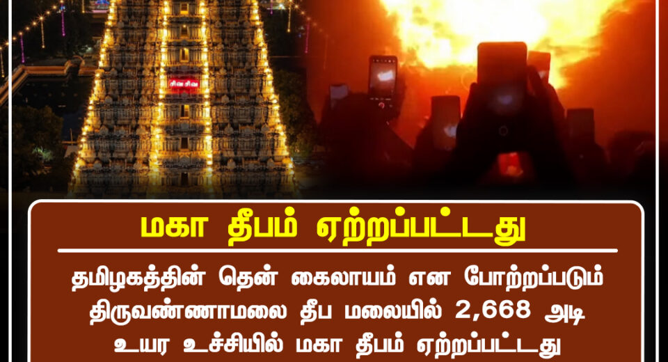 திருவண்ணாமலையில் மகா தீபம் வெற்றிகரமாக ஏற்றம் | Maha Deepam successfully lit at Tiruvannamalai