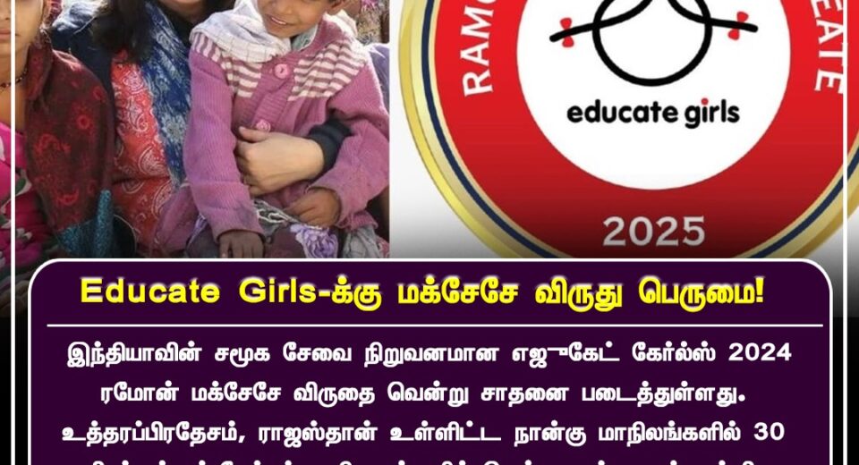 பெண்கள் கல்வி முன்னேற்றத்திற்கான சிறந்த பங்களிப்புக்காக அங்கீகாரம் | Recognition for transforming girls’ education in India.