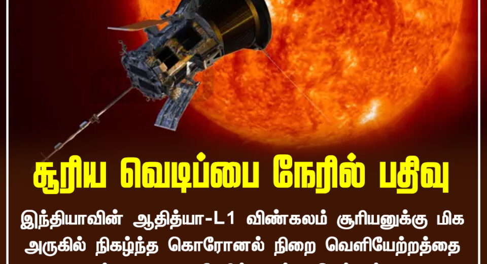 இந்தியாவின் ஆதித்யா-L1 விண்கலம் சூரியனின் வெடிப்பை நேரில் பதிவு செய்துள்ளது | India’s Aditya-L1 spacecraft captures a massive solar flare live for the first time.