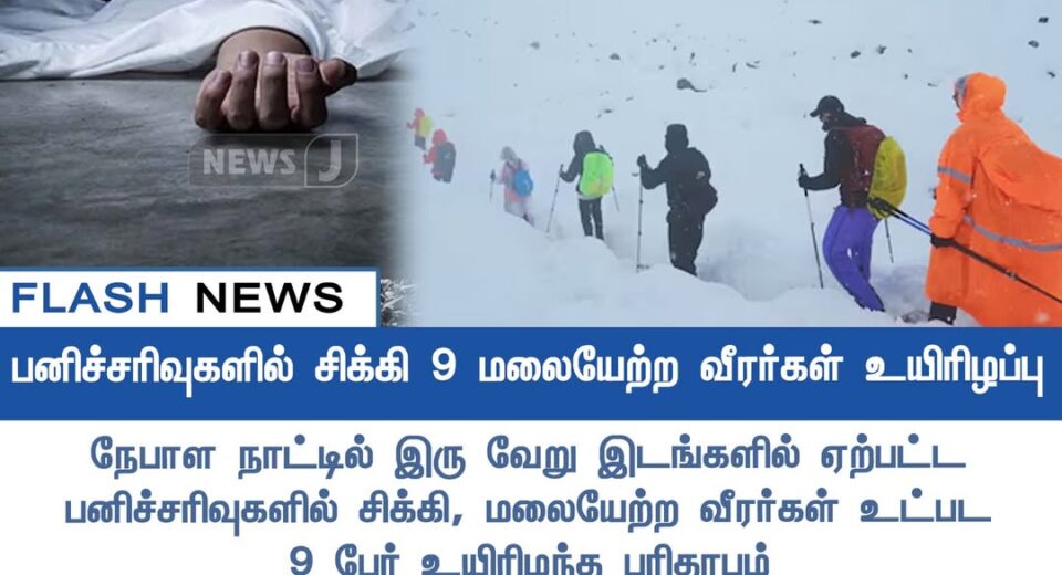 நேபாள நாட்டில் இரு வேறு இடங்களில் பனிச்சரிவு ஏற்பட்டது. இதில் சிக்கிய மலையேற்ற வீரர்கள் மீட்பு நடவடிக்கைகளின்போது உயிரிழந்தனர். உயிரிழந்தவர்களில் இரு வழிகாட்டிகள், இரு இந்தியர்கள் மற்றும் ஜெர்மனியைச் சேர்ந்த தலைமை ஒருவரும் அடங்குவதாக தகவல்கள் தெரிவிக்கின்றன.
