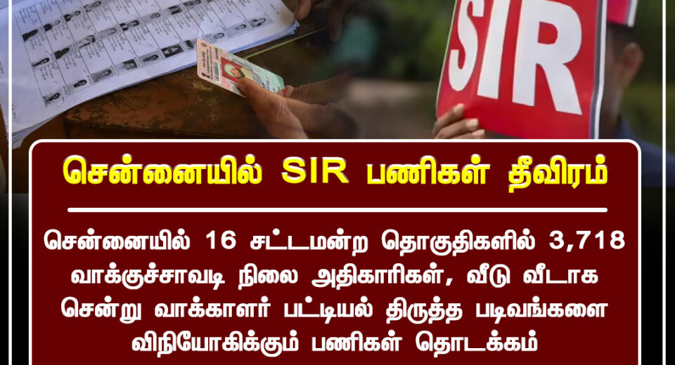 சென்னையில் வாக்காளர் பட்டியல் திருத்த பணிகள் வேகமடைந்துள்ளன | Voter list revision work in Chennai has intensified under the SIR (Special Intensive Revision) initiative.
