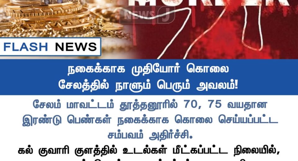 கல் குவாரி அருகே சடலங்கள் மீட்கப்பட்டுள்ள நிலையில், மறைந்தோரின் நகைகள் கொள்ளையடிக்கப்பட்டு இருப்பது உறுதி செய்யப்பட்டுள்ளது. | Police recovered the bodies near a stone quarry, confirming that their gold ornaments were looted after the brutal crime.