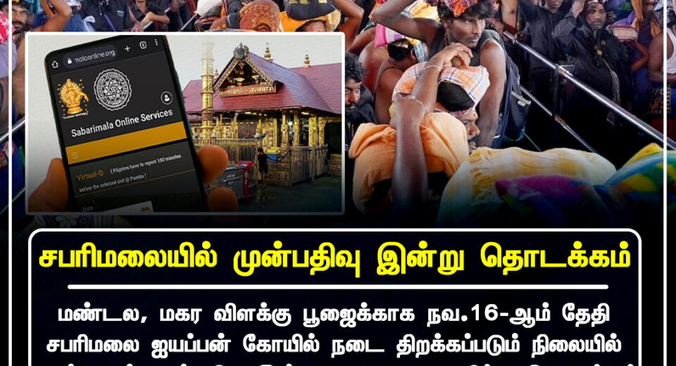 மண்டல பூஜைக்கான முன்பதிவு இன்று மாலை 5 மணிக்கு துவக்கம் | Online registration for Mandala Pooja at Sabarimala opens today at 5 PM
