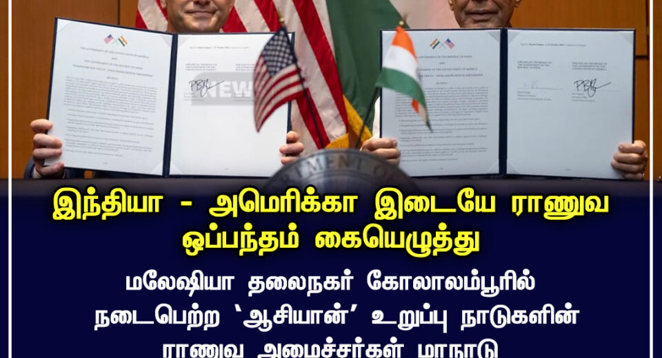 மலேசியா கோலாலம்பூரில் நடைபெற்ற ஆசியான் மாநாட்டில் 10 ஆண்டுக்கால ராணுவ ஒப்பந்தம் கையெழுத்து | India and the U.S. ink a 10-year defence cooperation deal at the ASEAN summit in Kuala Lumpur