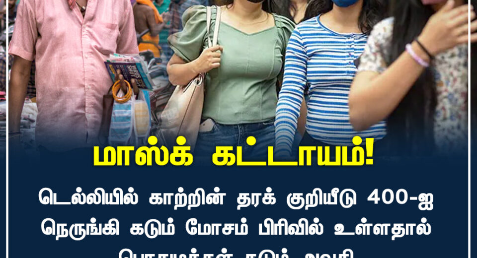 டெல்லியில் காற்று தரக் குறியீடு 400-ஐ தாண்டியதால் மாஸ்க் அணிதல் கட்டாயம் | Delhi makes masks mandatory as AQI surpasses 400 mark