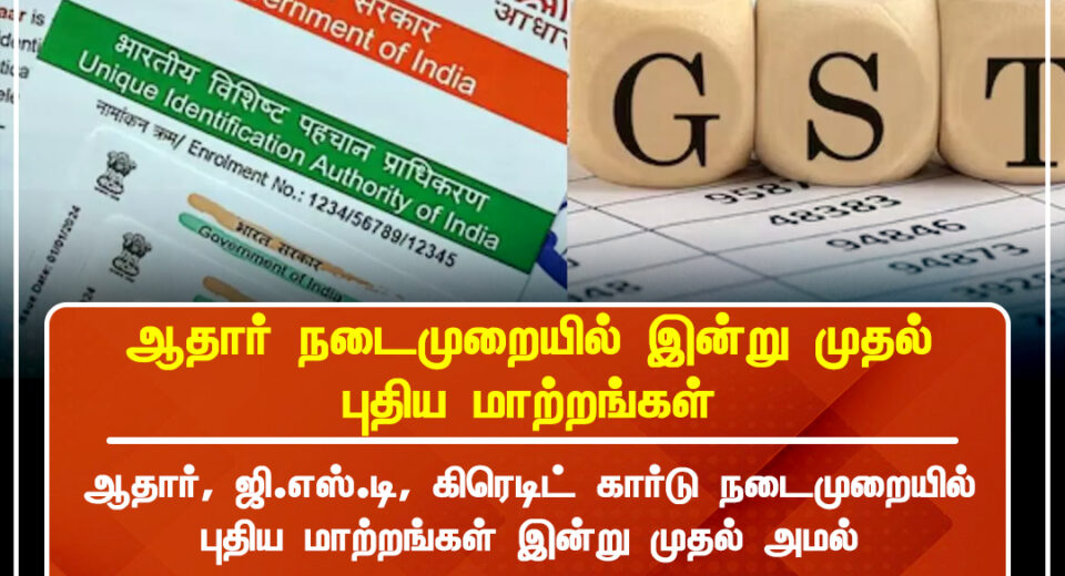 ஆதார், ஜி.எஸ்.டி, மற்றும் கிரெடிட் கார்டு தொடர்பான புதிய நடைமுறைகள் இன்று முதல் அமலில் | Major changes in Aadhaar, GST, and Credit Card rules take effect from today