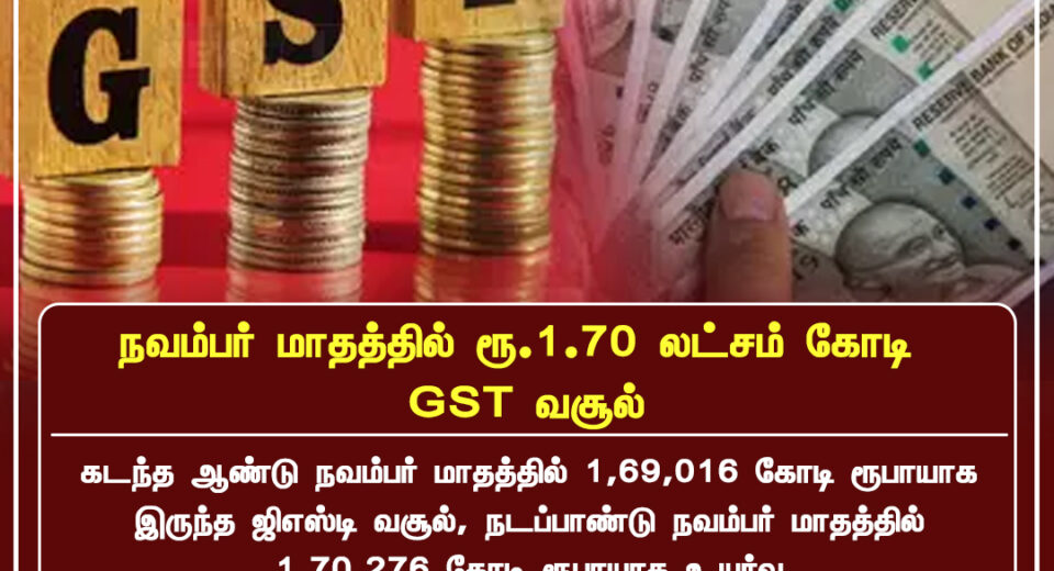 நவம்பர் மாதத்தில் ₹1.70 லட்சம் கோடி GST வசூல் | GST Collection Touches ₹1.70 Lakh Crore in November