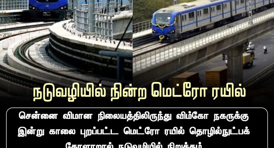 சென்னை விமான நிலையம்–விம்கோ நகர் வழித்தடத்தில் மெட்ரோ சேவையில் திடீர் தடை ஏற்பட்டது | A temporary disruption affected Chennai Metro services on the Airport–Wimco Nagar line